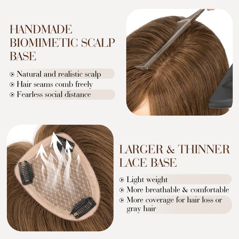 • 【Comfortable & Effective Coverage: All-Day Wear​】We know comfort matters. That’s why our hair toppers have a larger, thinner lace base. It offers excellent coverage for hair loss or gray hair while keeping your scalp breathable. The lightweight build ensures all-day comfort, so you can wear it from dawn to dusk without a hitch. Stay stylish and comfortable, no matter how busy your day is.​