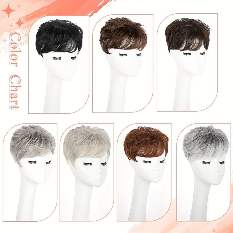 Hair Toppers for Women Short Hair Topper with Bangs Pixie Thining Hair Fluffy Pixie Hair for Women with Bangs Synthetic Hair Pieces for Thinning Hair Side Part Hair Toppers Rose Net 5x6 Inch for Women Daily Use Loose Wave Wig Artificial Wig:_1B/2#