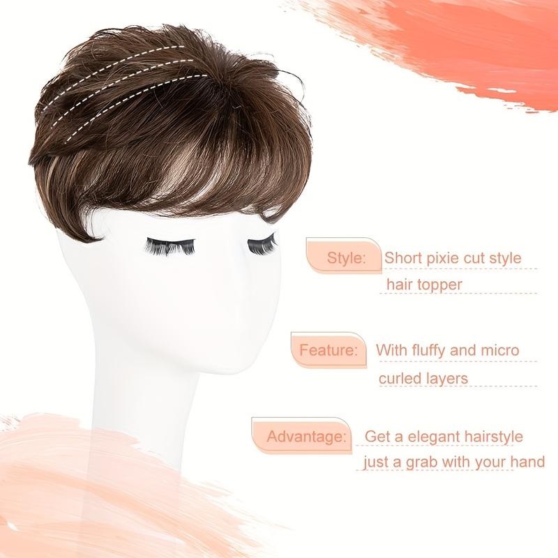 Hair Toppers for Women Short Hair Topper with Bangs Pixie Thining Hair Fluffy Pixie Hair for Women with Bangs Synthetic Hair Pieces for Thinning Hair Side Part Hair Toppers Rose Net 5x6 Inch for Women Daily Use Loose Wave Wig Artificial Wig:_T1B/100#