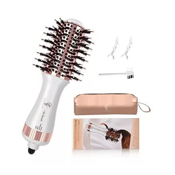 || TENDENCIAS DE CABELLO ESENCIALES PARA VIAJES EN EL HOGAR COMPACTOS Y CONVENIENTES El cepillo de aire caliente de 2 pulgadas es más pequeño y liviano (peso 0.88 lb) que otros cepillos secadores de cabello difíciles de manejar, por lo que puede almacenarlo y empacarlo más fácilmente para un viaje feliz o en una bolsa de gimnasio. Además; te hace sostenerlo más cómodo; diseñamos especialmente el mango más delgado para que la punta de su pulgar pueda tocar la punta de su dedo índice mientras sostiene el mango) || TECNOLOGÍA ESPECIAL DE NANO TITANIO Su cepillo de aire caliente está hecho de nano titanio no desmontable y cerdas combinadas sin enredos que pueden proporcionar una mayor transferencia de calor para peinados duraderos. Además, el cepillo ovalado especial hará que su cabello tenga una buena cantidad de ascensor en la raíz; cuerpo liso y puntas rizadas|| MUCHAS OPCIONES DE ESTILO HECHOS POR USTED MISMO Nuestro cepillo de aire caliente tiene una función múltiple 4 en 1 y es ovalado; lo que te facilita dar volumen a tu cabello levantando las raíces con el borde más plano. Además; utiliza nuestro secador de cepillo de aire caliente como alisador o rizador para crear tus diferentes estilos de cabello de moda. || INNOVADORES VENTILADORES DE FLUJO DE AIRE 360 El cable giratorio 360 (4.9 pies) es liviano y ergonómico es más fácil de usar. También realizamos mejoras significativas en la potencia y las ventilaciones de flujo de aire para secar el cabello más rápido y lograr un peinado más duradero. Cepillo secador de aire caliente HAIR TRENDS con motor de CC de 600 W incorporado; esta potencia y calor son suficientes para secar el cabello sin dañarlo; 360vent ofrece un área de secado envolvente un 50 % más grande para secar el cabello rápidamente; lo que ayuda a distribuir uniformemente el calor para un peinado duradero || CADA ARTÍCULO COMPROBADO POR CALIDAD. Para satisfacer las necesidades de diferentes tipos de cabello; diseñamos tres configuraciones para el secador de cepillo de aire caliente (alto, medio y bajo). Por seguridad; Agregamos un enchufe ALCI a este secador de pelo: es un disyuntor para que la corriente sea estable. Nuestro objetivo: ¡ayudar a todos a disfrutar de un cabello bonito todos los días!