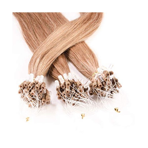 hair2heart Microring Extensions Echthaar Glatt - 100 Strähnen 0.5g 50cm Honigblond