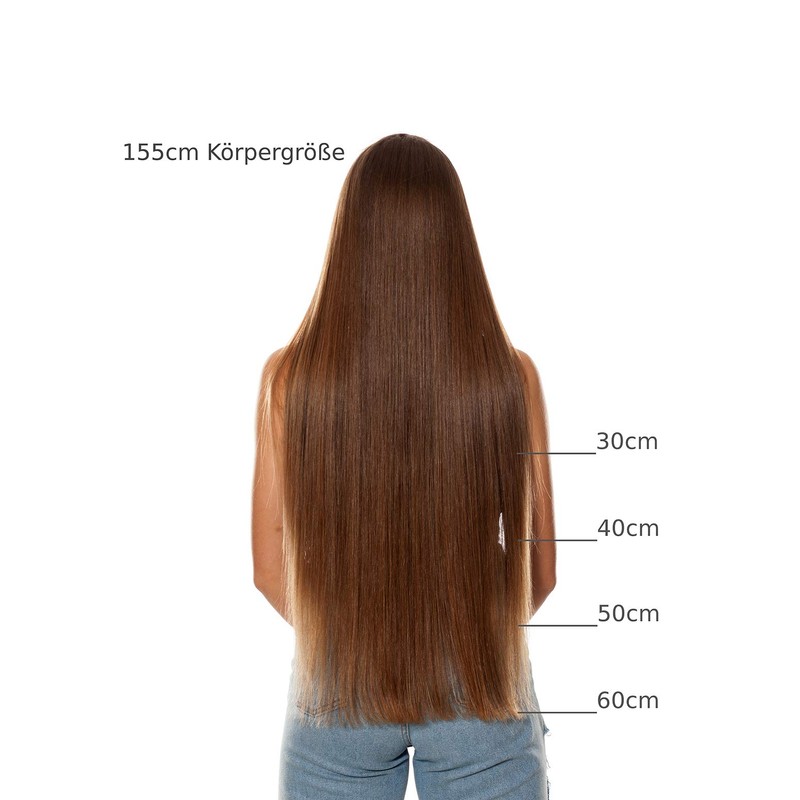 - 25 x 0.8 g premium nano ring loop extensions, real hair strands in 40 cm length. The total hair weight of the human hair nano ring hair extension is 20 g
