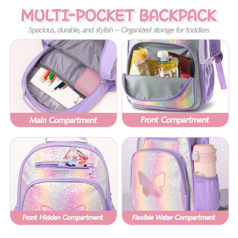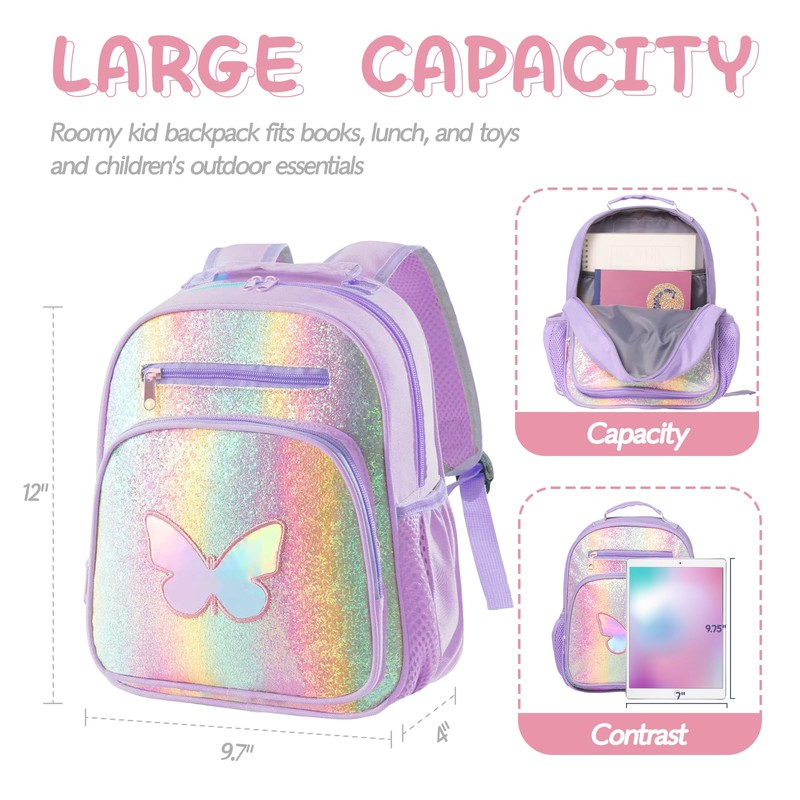 Hairao Toddler Backpack for Girls and Boys 2-4,Kids Preschool Backpack,Kindergarten Backpack,Cute Kids Backpacks for Girls,Nursery Travel Bag with Chest Strap (Butterfly)