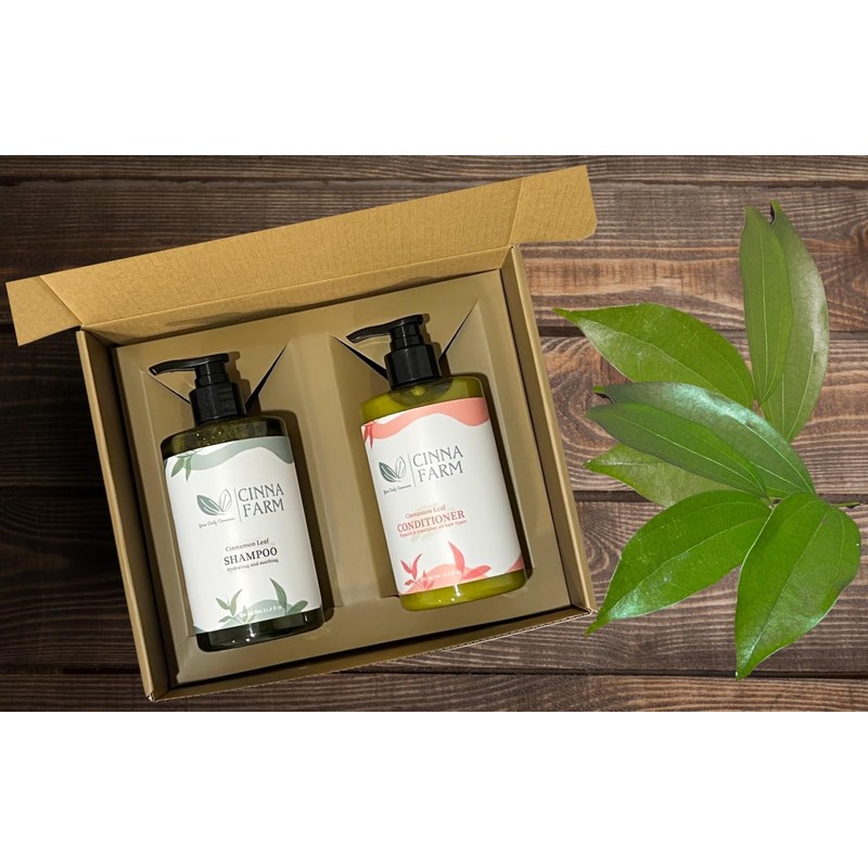 - This deluxe gift set includes 11.8 fl oz bottles of CinnaFarm Shampoo and CinnaFarm Conditioner, beautifully packaged in a gift box
