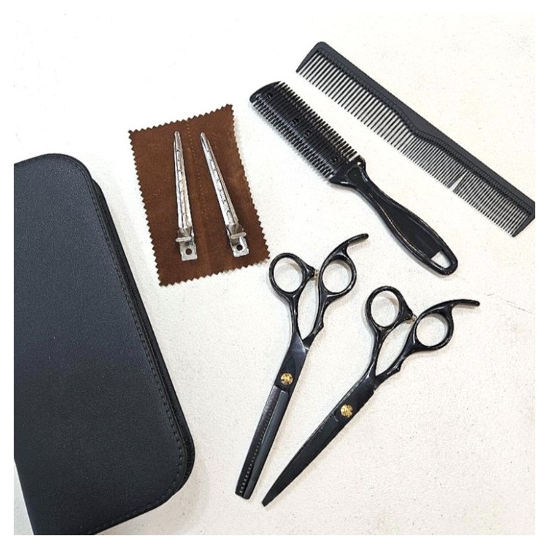 • Description: This is a full set of combs, scissors, thinning shears, bangs cutters, and tongs needed for self-grooming. It comes with a storage pouch, making it convenient to carry. Self-grooming,Good for use during volunteer work.There may be some scratches.