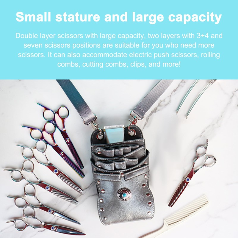 - ORGANIZED STORAGE Equipped with 7 built-in scissor compartments, this bag allows you to easily organize and access your professional hair cutting tools.