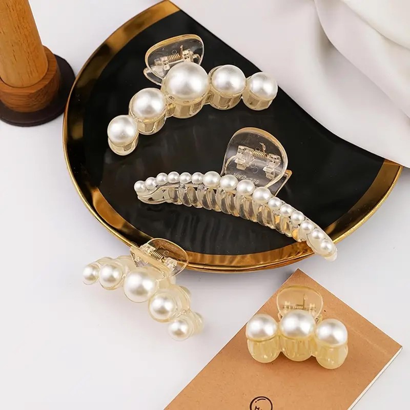 HairLY Elegante Haarklammern aus Kunstharz mit Perlen, 4 Stück, verschiedene Größen, modisch, schick, für Party, Hochzeit und den täglichen Gebrauch, geeignet für dünnes, dickes Haar, langes und