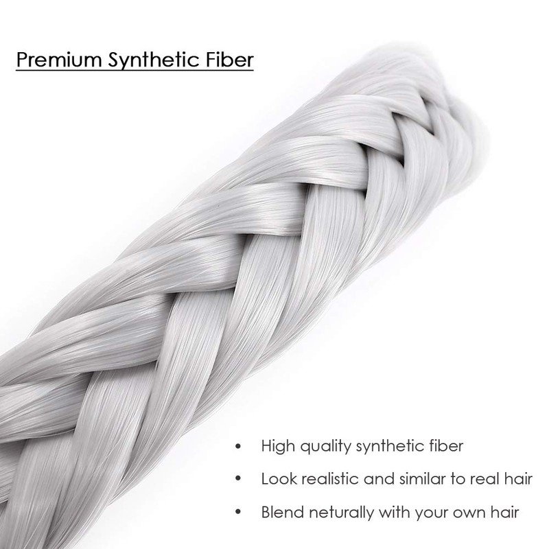 Hairro Braided Headband With Teeth Fishtail Braids Hairband With Tooth Synthetic Fish Tail Hair Band Plaited Hairband Hair Hoop Braid Headband Extensions Headband Hairpiece For Women 48g #silver gray