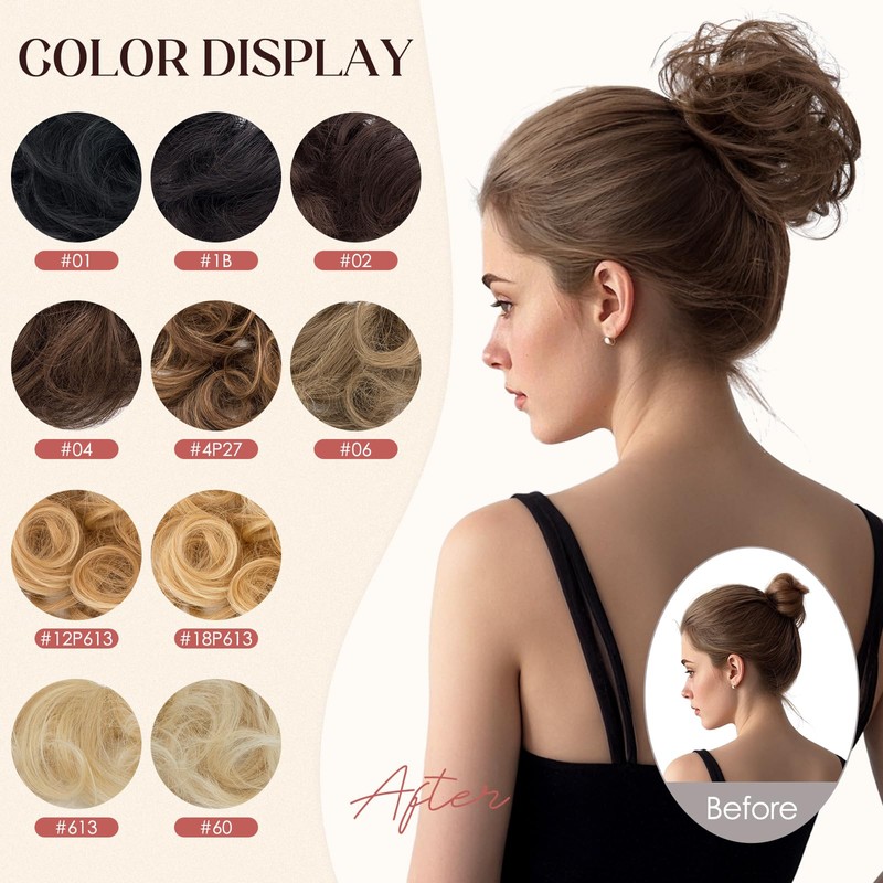 - 100% Human Hair——Hairro human hair bun is made of 100% real remy human hair, can be dyed and curled, soft and comfortable, lightweight, durable.