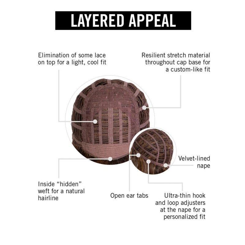 - FEATURES: Hairdo Cap with hidden weft and wide velvet band for comfort, Stretch material for a custom-like fit, Open ear tab and ultra thin nape adjusters