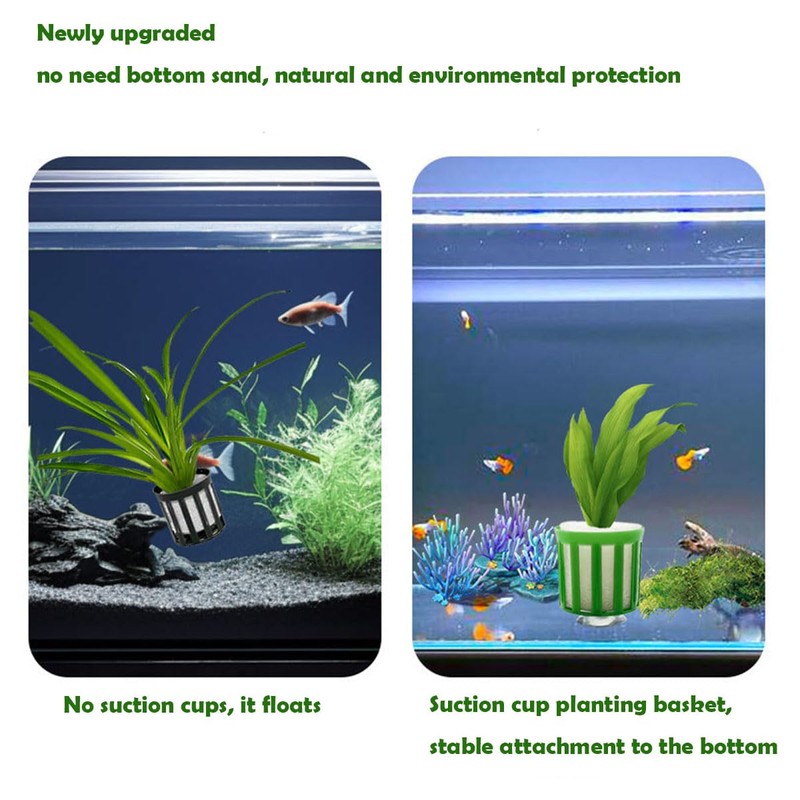 - Easy to Use: Stuff the suction cups into the plastic basket, then wrap the water plants with a sponge, put the water plants into the water plant pot, and then fix it on the fish tank, the water plants won't float up again; and the water plant fixing ring is very small, it won't take up too much space.