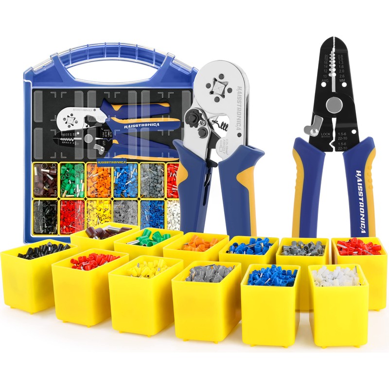 - A Complete Kit: You will have 1pcs ferrule crimping tool,1pcs wire stripper,2500pcs wire end ferrule terminals and a patented haisstronica tool box.A case brings everything you need to the job.