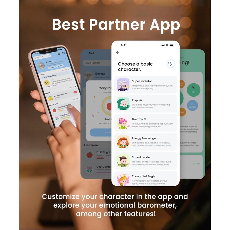 BubblePal could change into 20+ unique, beta user-created characters.Characters from various cultural backgrounds,can communicate in multiple languages.Customize your character in the app and explore your emotional barometer,among other features!