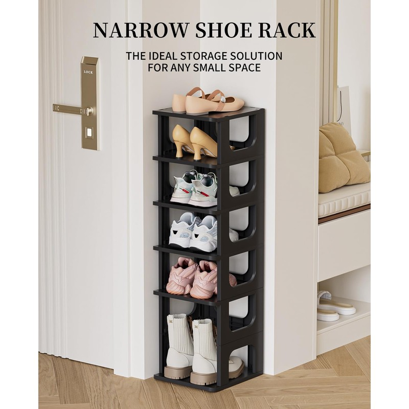 - 【PREMIUM MATERIAL】 HAIXIN tall shoe rack organizer narrow shoe rack is made from strengthened pp material and upgrade sturdy smooth water-resistant panel connectors, good stability and prevent rusting, making the skinny shoe rack stackable easier to be set up and stabler. No tools are required for assembly. Easy to clean with its smooth PP surface. Direct flush and wipe it without disassembly.
