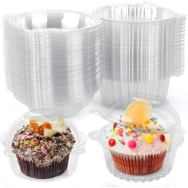 HAKACC 50PCS Cupcake Holders, Clear Cupcake Boxes with Dome Lids for Parties