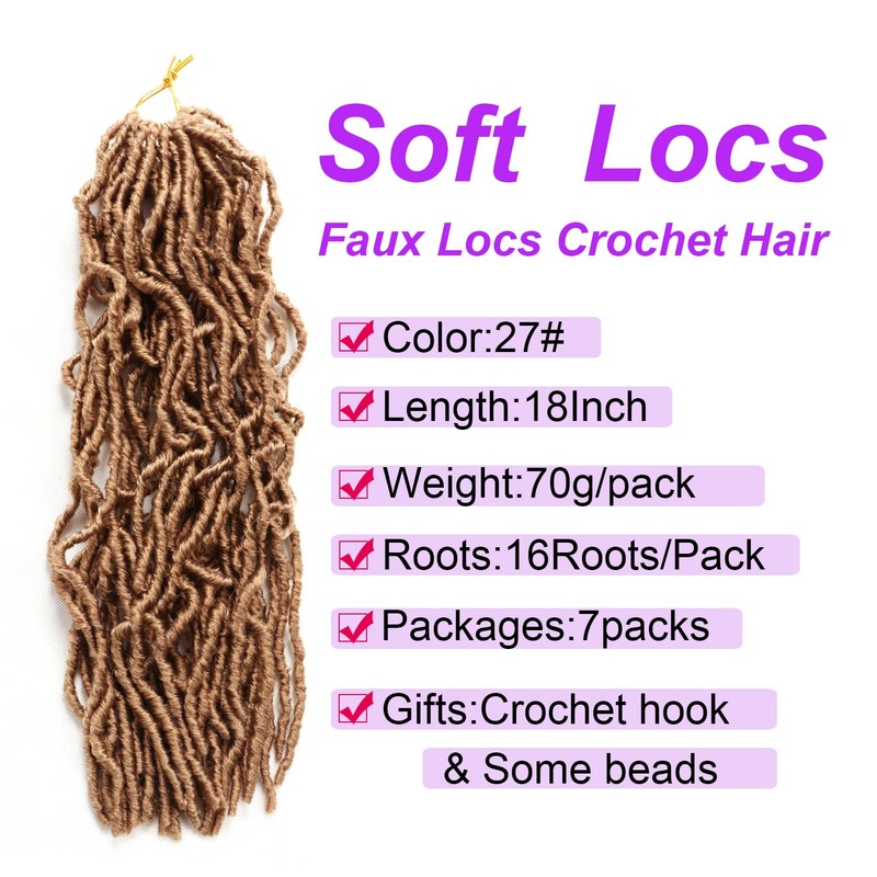 - Eigenschaften: 45,7 cm große Göttin Dreadlocks, 80 ± 5 g/Set, 7 Stück, Farbe: #1B, #T-27, #T-30, hautfreundlich, leicht und weich