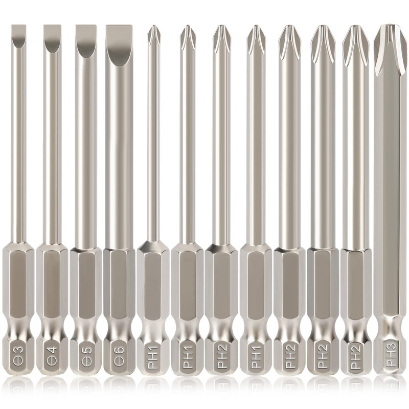 Hakkin 12PCS Screwdriver Bits Set S2 Steel Magnetic Screwdriver Bits 3 Inch Slotted Phillips 1/4" Hex Shank Screwdriver Bits for Power Screwdriver Drill Impact Driver
