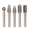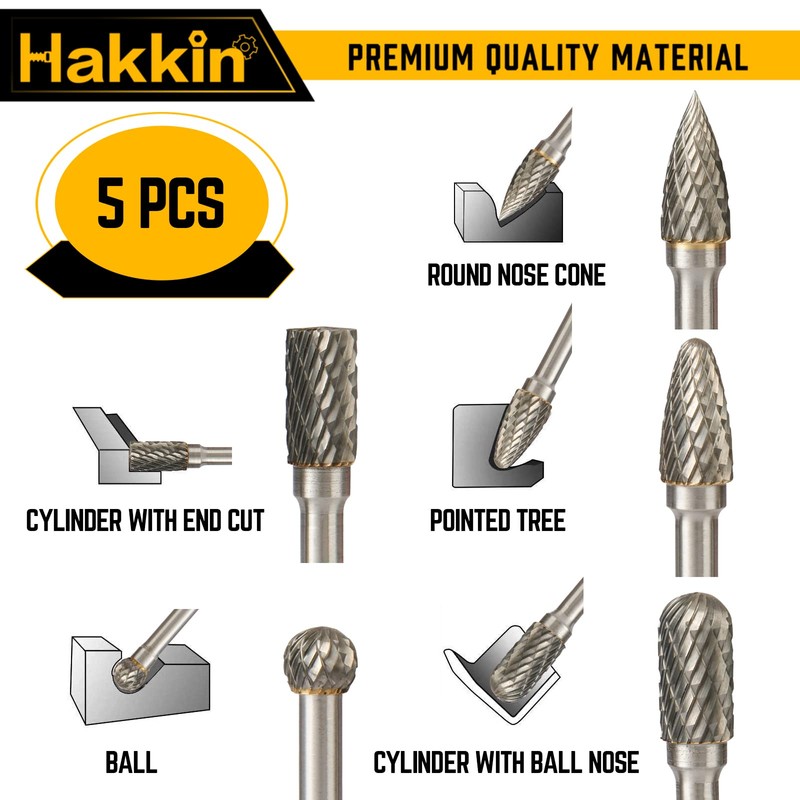 - 【Full Set Work】5 pieces Double Cut Solid Carbide Rotary Burr Set carbide burr set, fits most small rotary tools,Woodworking Drilling Carving Engraving, making DIY carving fans much easier to do the wood working job.