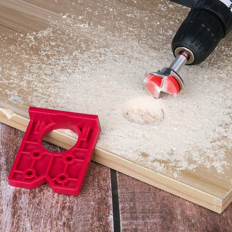 - ✅【𝗣𝗲𝗿𝗳𝗲𝗰𝘁 𝗖𝗼𝗺𝗽𝗮𝘁𝗶𝗯𝗶𝗹𝗶𝘁𝘆】:The red positioning plate is only used to draw the installation position of the hinge hole to locate the center hole. After drawing, remove the positioning plate and start drilling. It is not possible to drill holes directly on the red positioning plate. The cutter fit in the plastic template hole!!:)
