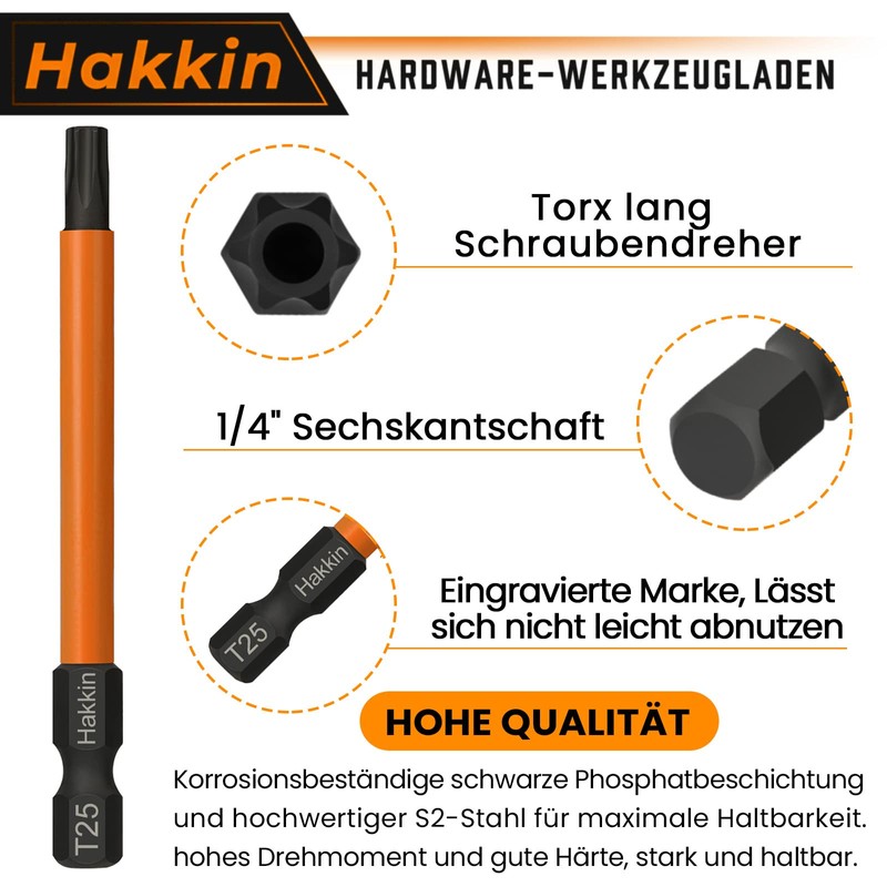 Hakkin T5-T40 Torx Bit Set Long 75 mm 13 Pieces 1/4 Inch Torx Screwdriver Set Magnetic Star Screwdriver with Hole S2 Steel Hexagonal Screwdriver Bit Sets with Handle T20 for Cordless Screwdrivers