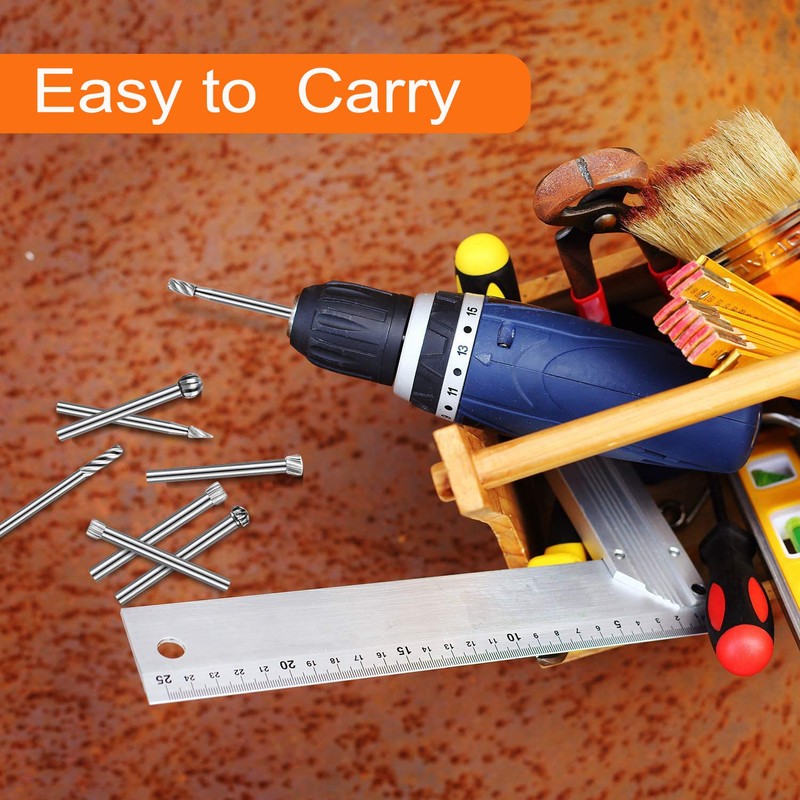 - 【Premium Material】Rotary Burr Set is made of high quality high speed steel, wear-resistant, durable, high working efficiency and long service life, making work more convenient. Can be used to process wood, plastic, soft metal like aluminum.