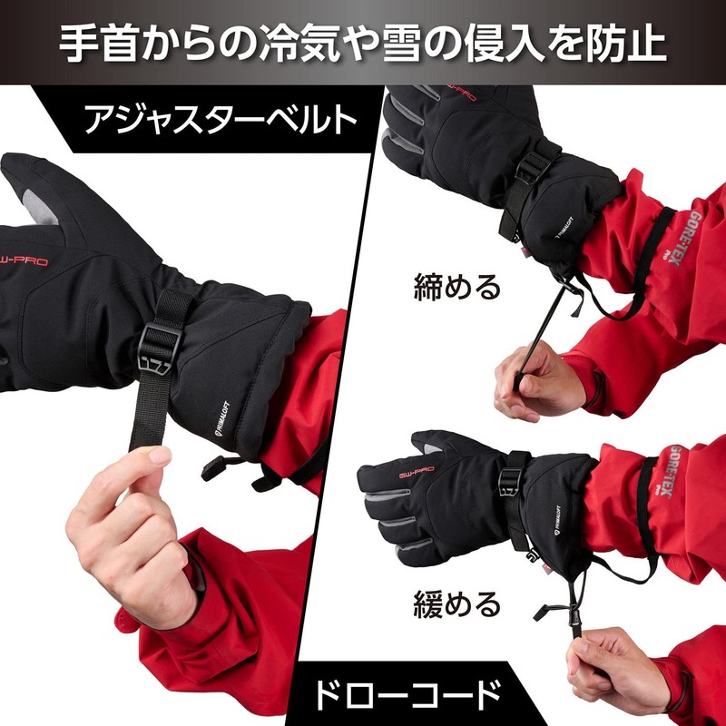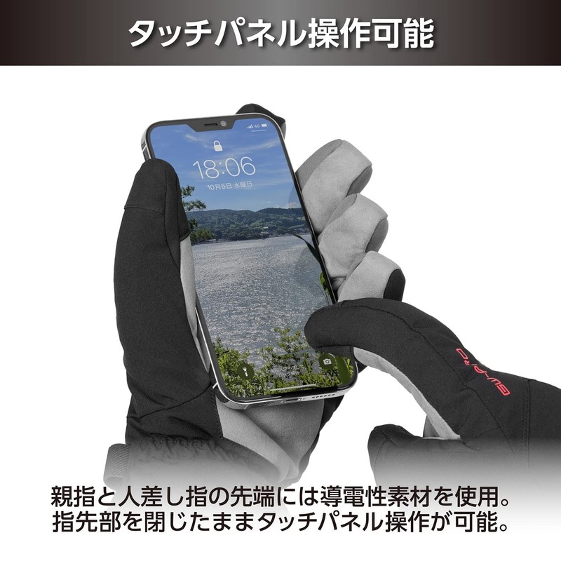 • The thumb and index finger are made of conductive material that allows you to operate touch panels such as smartphones. It also comes with a leash band to prevent the gloves from falling or losing and a holder for your stylus pen