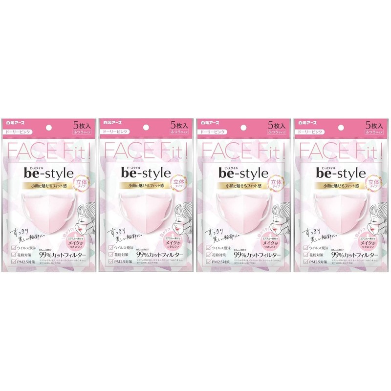 - Bee Style Mask, 3D Type, Regular Size, Dolly Pink, 5 Pieces, Set of 4