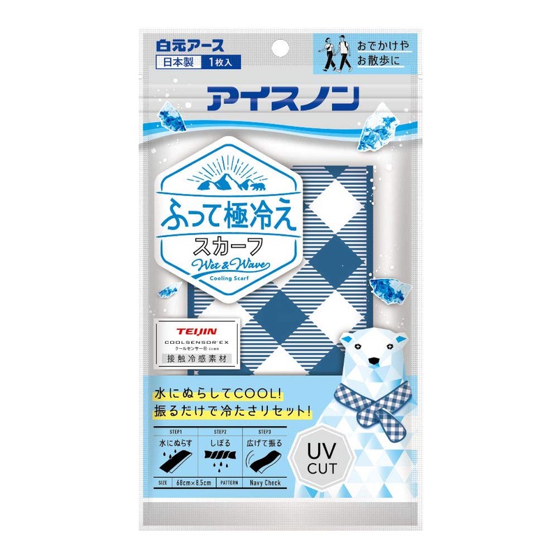 Hakugen Earth Icenon Ultra Cooling Scarf, Shake to Activate, Blue Checker, 1 Piece, Cool Touch