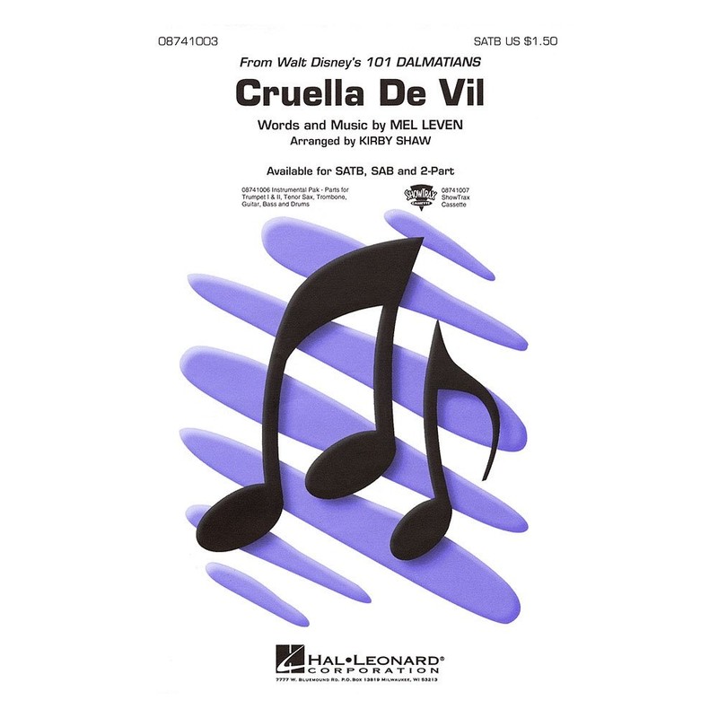 Hal Leonard Cruella De Vil (from 101 Dalmatians) 2-Part Arranged by Kirby Shaw