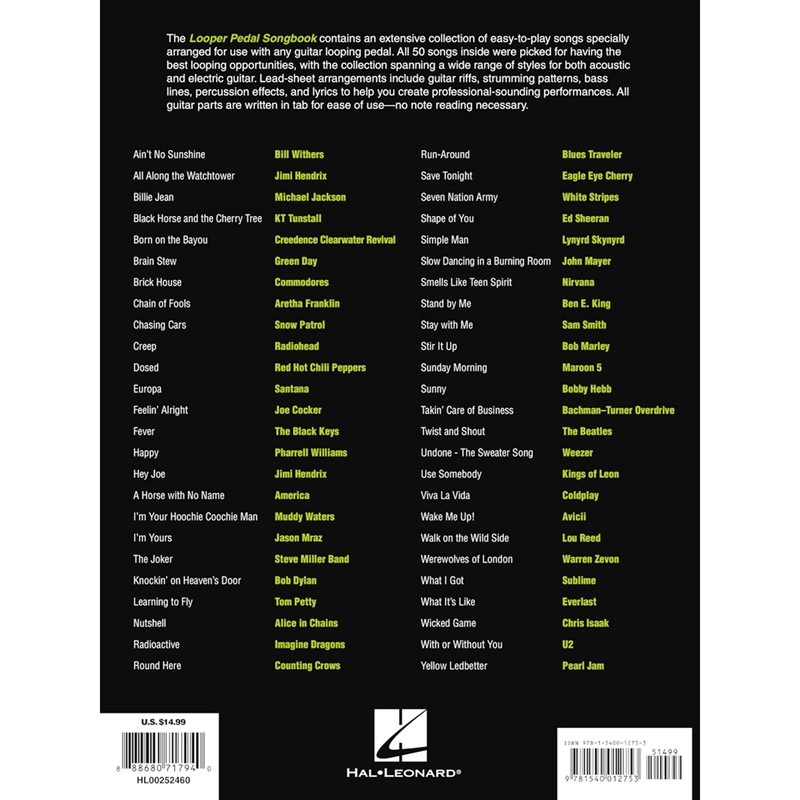 Hal Leonard Looper Pedal Song Book: 50 Hits Arranged for Guitar with Riffs, Chords, Lyrics & More