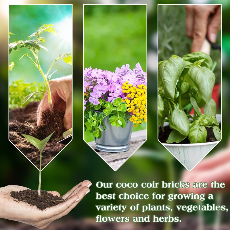- đ±ăSuper Easy to Use & Storeă Just soak the coconut coir brick in water and it crumbles apart and then drain the excess water, speed up its decomposition and expansion through the mixing of tools, after being mixed with other substrates, put it into your customized cultivation container and plant the bred seedlings.The compressed coco coir brick is lightweight, and after swelling with water the coconut coir brick can be bagged up like nutrient soil.
