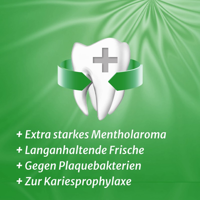• Caries prophylaxis - The effective active ingredient composition of the toothpaste made of fluoride (1,450 ppm), CPC and the vegetable allantoin protects the teeth from tooth decay, inhibits plaque formation and nourishes the gums.