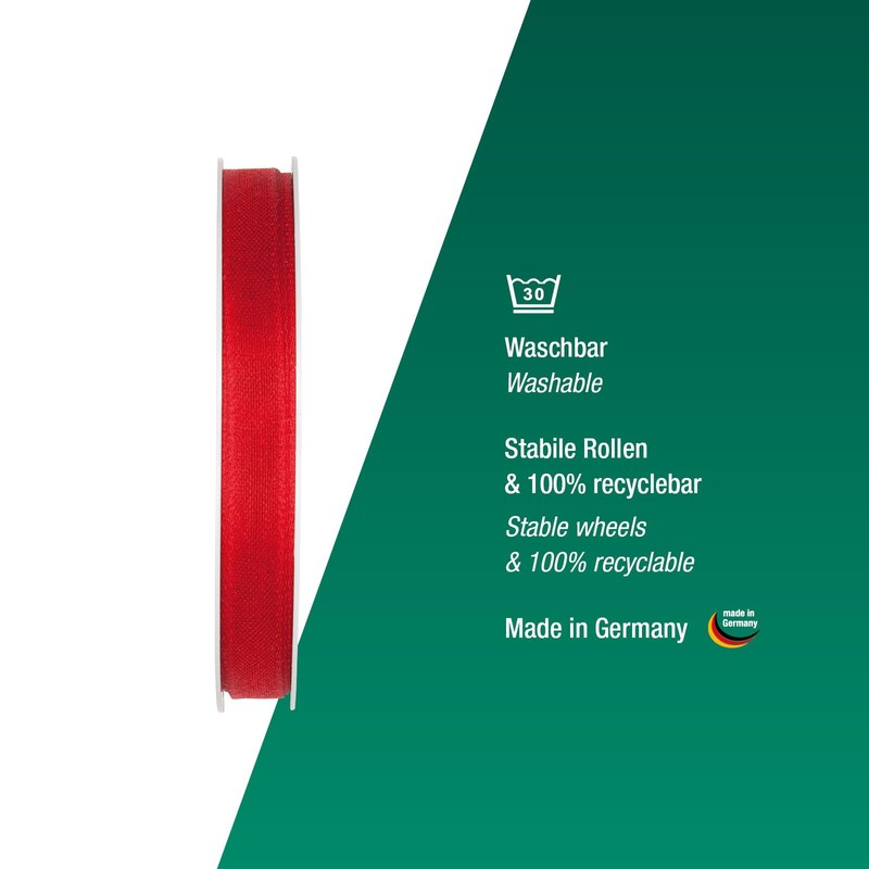 - Environmentally friendly and sustainable: our gift ribbon comes on a spool of recycled material. Thanks to short delivery routes and production in Germany, you make a contribution to environmental protection with the purchase.