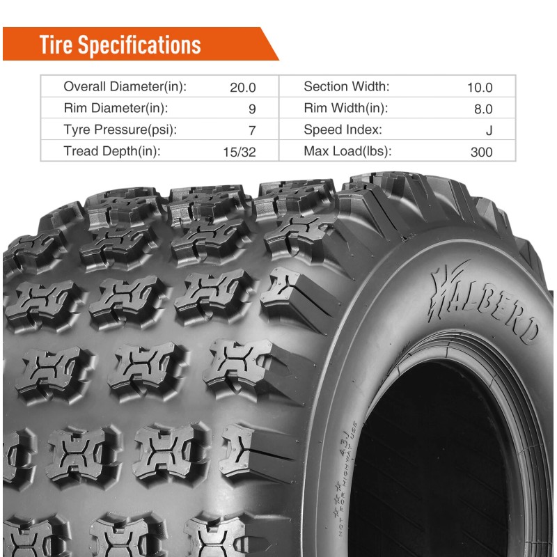 All-terrain ApplicableThe HALBERD HS01/02 tires will bring powerful traction, taking you to gallop any terrain from loose loam to hardpack. Truly a great ALL TERRAIN tire at an affordable pr‘ice | Directional Tread PatternHALBERD HS01/02 tires have a tread that is made to perform best going forward, particularly on loose surfaces such as mud, snow, and water. The same can be said about sandy areas or trails that are not highly impacted. Increased traction from your directional ATV tires leads to increased safety and the ability to make sharper turns with a decreased chance of overturning |
