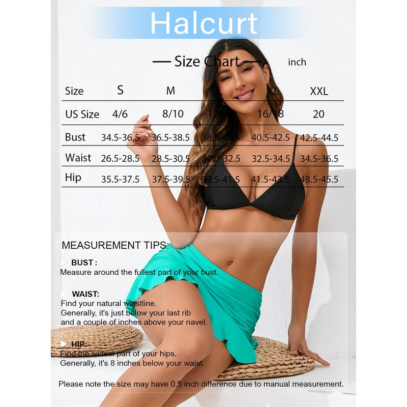 Halcurt Women's Low Waisted Ruched Ruffle Swim Skirts with Hipster Bikini Bottoms Tummy Control Swimsuit Turquoise M