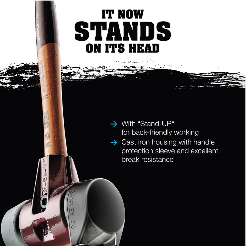 - Available in sizes ranging from D30mm to D60mm sledge hammer and in size D60mm with rubber insert and “stand-up”.