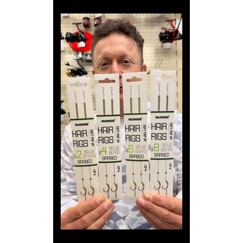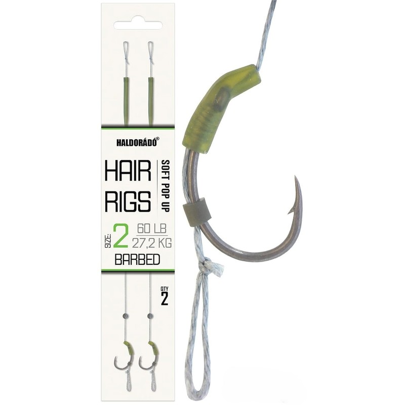 Haldorado Hair Rigs, Size 2 Barbed Hooks, Soft Pop Up, 22cm Length, 27.2kg/60lb, 2-Qty