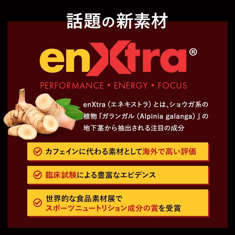 - EnXtra is a popular ingredient that has undergone research as an alternative to caffeine extracted from ginger-based alpinia galanga. It is used for a variety of products overseas, and you can expect a function that cannot be complemented by caffeine. Effectively backup your energy delivery by taking together with theanine, tyrosine, and caffeine