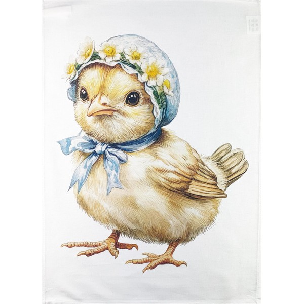 Half a Donkey Easter Chick in a bonnet large cotton tea towel