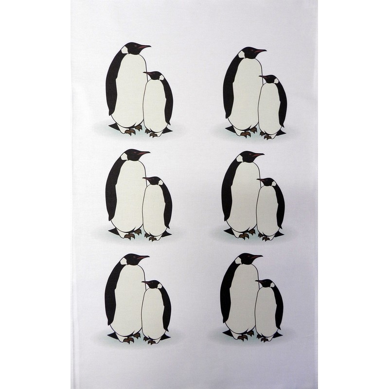 - This large cotton tea towel has an image of a large and a smaller penguin on it, like an old married couple. Repeated design ove rthe tea towe