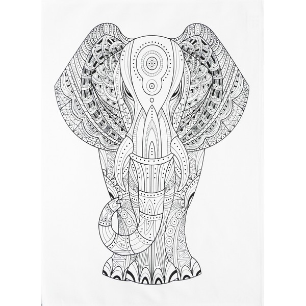 - Featuring a large elephant, with a curled trunk and tattoo zentangle design interior