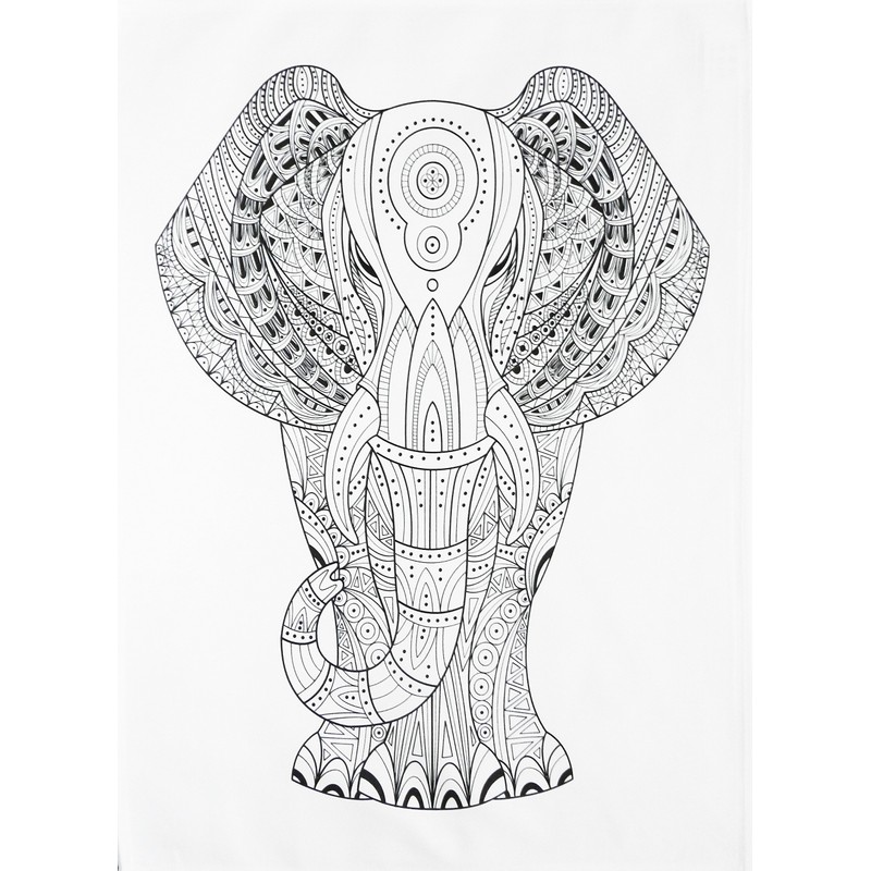 - The Big Zentangle Elephant Design - Large Cotton Tea Towel by Half a Donkey