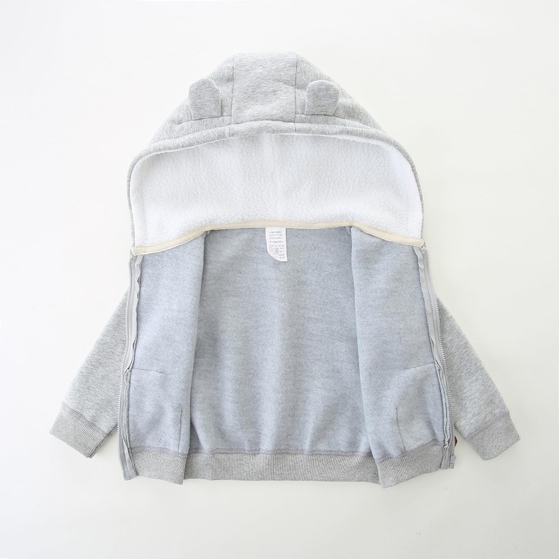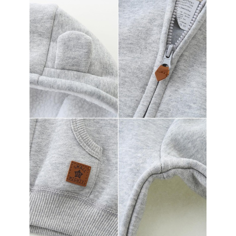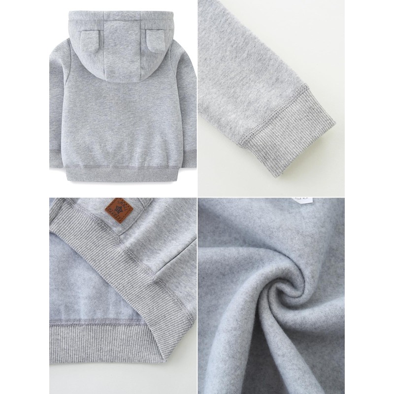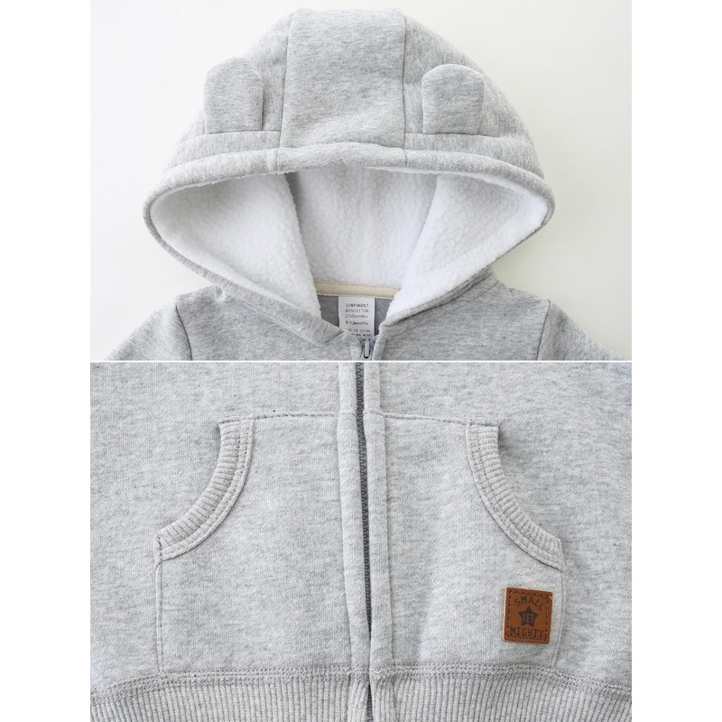 - 【DESIGN】The toddler baby hoodie is Classic fit.Hood with cute bear ears for adding styles.Split front pouch pockets for storing essentials.Full zip design for changing easier.Thickened Faux sherpa lining of hood provides an extra layer of coziness when needed.