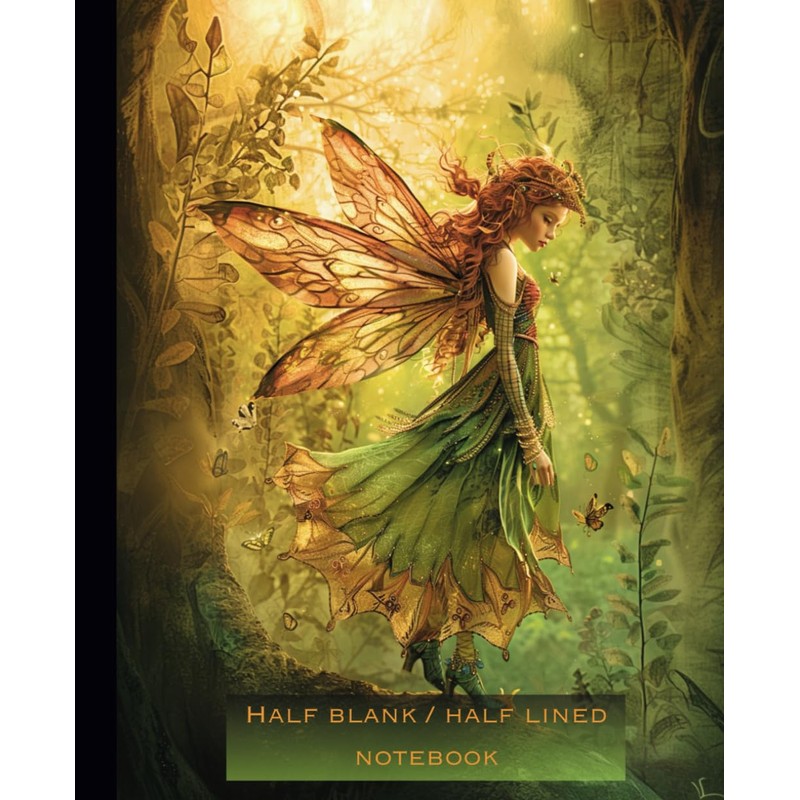 Half Blank / Half Lined Notebook: Fairy Dual Purpose Sketch and Line Paged Journal.