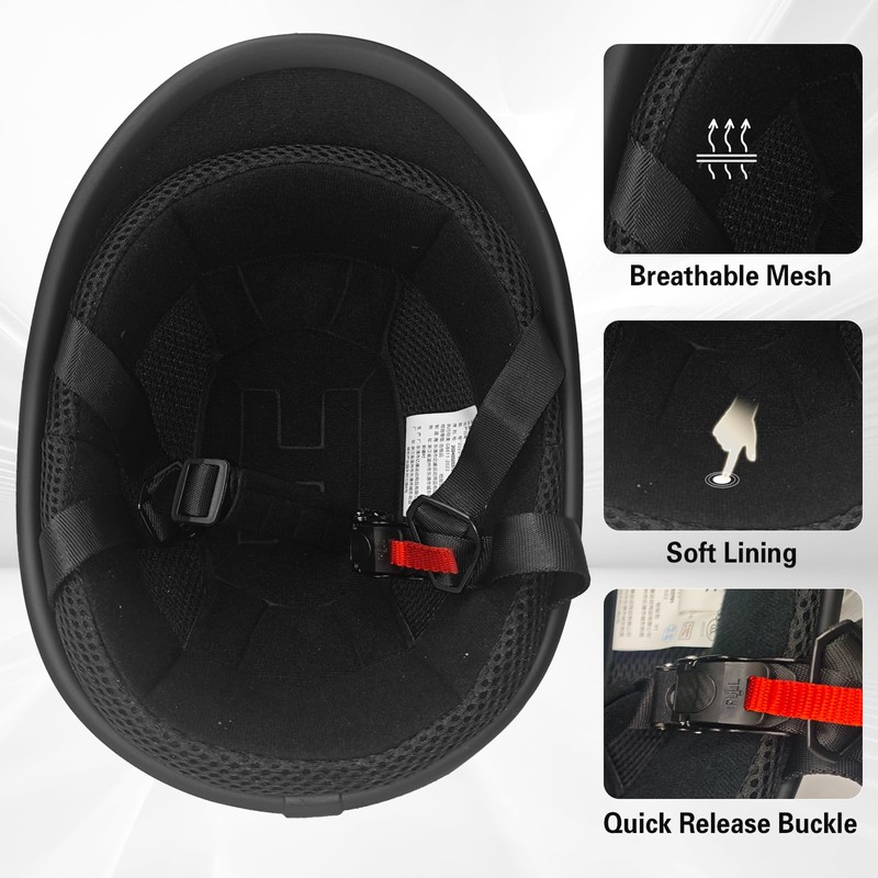 - Breathable Inner Liner - Open face half helmet uses cozy and soft lining, breathable mesh, sweat-absorbing is equipped.