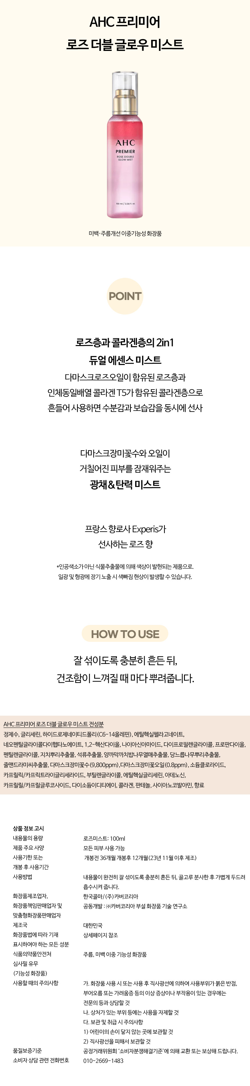 Half Club / AHC Premier Rose Double Glow Mist 100ml / 에이에이치씨 AHC 프리미어 로즈 더블 글로우 미스트 100ml