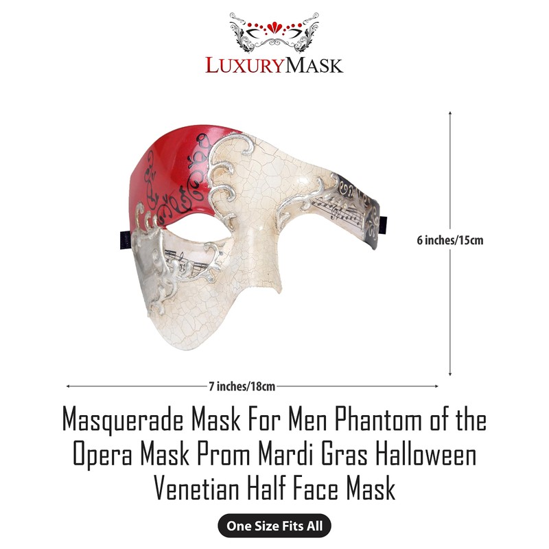 - PHANTOM OF THE OPERA MASK: Inspired by the iconic musical, this masquerade mask covers one side of the face to bring an element of mystery to your look. This style also resembles Venetian masks that were traditionally worn during the carnival in Venice.