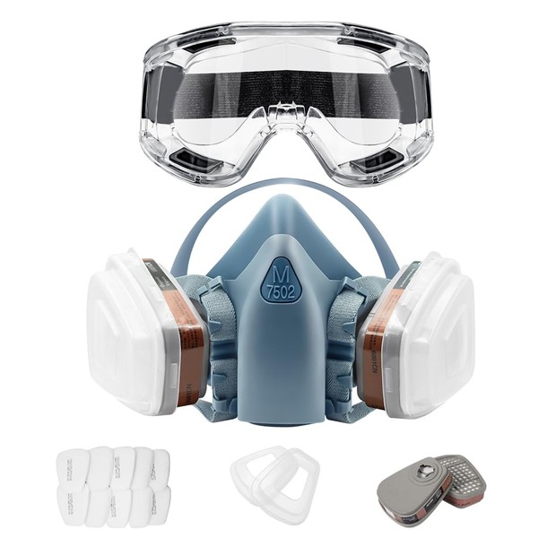 - 【Package Includes】You will get 1 * 7502 half facepiece cover,1 * safety glasses, 2 * activated carbon filters, 2 * filter cover, 10 * filter cottons, and lifelong time friendly customer service.