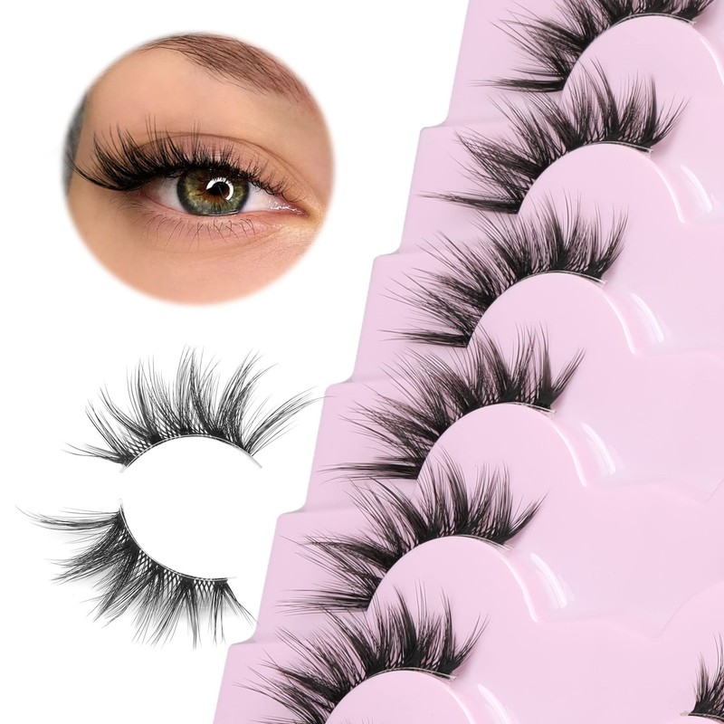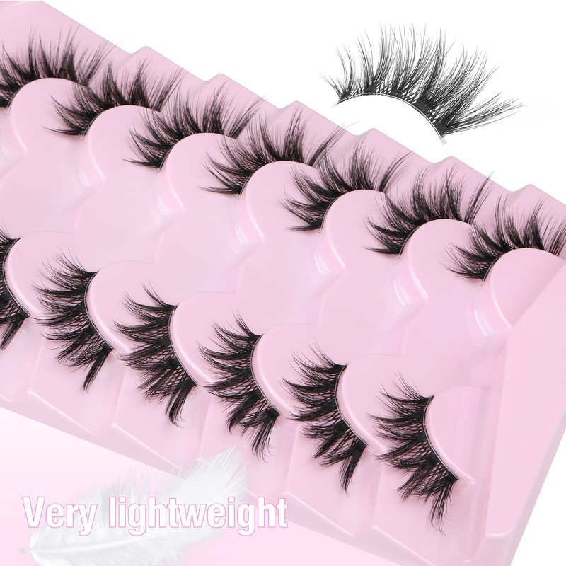 Half Lashes Natural Look Wispy Cat Eye False Eyelashes Clear Band Fluffy Faux Mink Lashes Pack 3D Soft Volume Lash Strips 16mm Light Fake Eyelash Extension 7 Pairs by Boahankuke