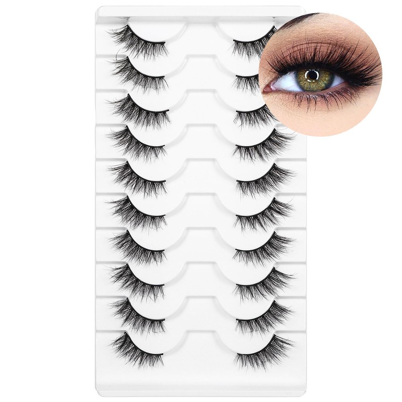 Half Lashes Wispy Cat Eye, 15mm Half Lashes Natural Look, 3D Fluffy Soft False Eyelashes for Subtle Glam and Enhancement, 10 Pairs Pack
